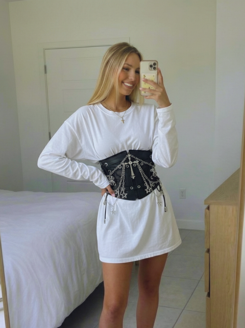 O Conjunto Aila é a personificação do estilo boho-chic de luxo. Composto por um top estruturado com nó frontal e alças trançadas, e uma saia longa em camadas de renda texturizada (frivolité) com babados assimétricos. O destaque absoluto fica por conta do movimento fluido e da leve transparência, criando um visual etéreo perfeito para beach clubs e ocasiões de verão inesquecíveis.